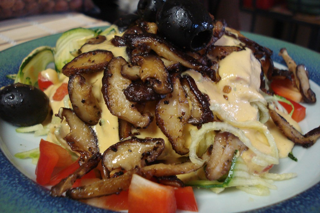 - toppings of your choice (I used black olives and sautéed shiitake mushrooms)
