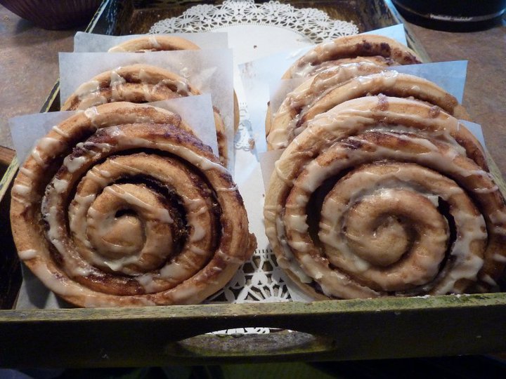 Oh…Josh indulged in one of their HUGE cinnamon rolls (also vegan, but not gluten-free):