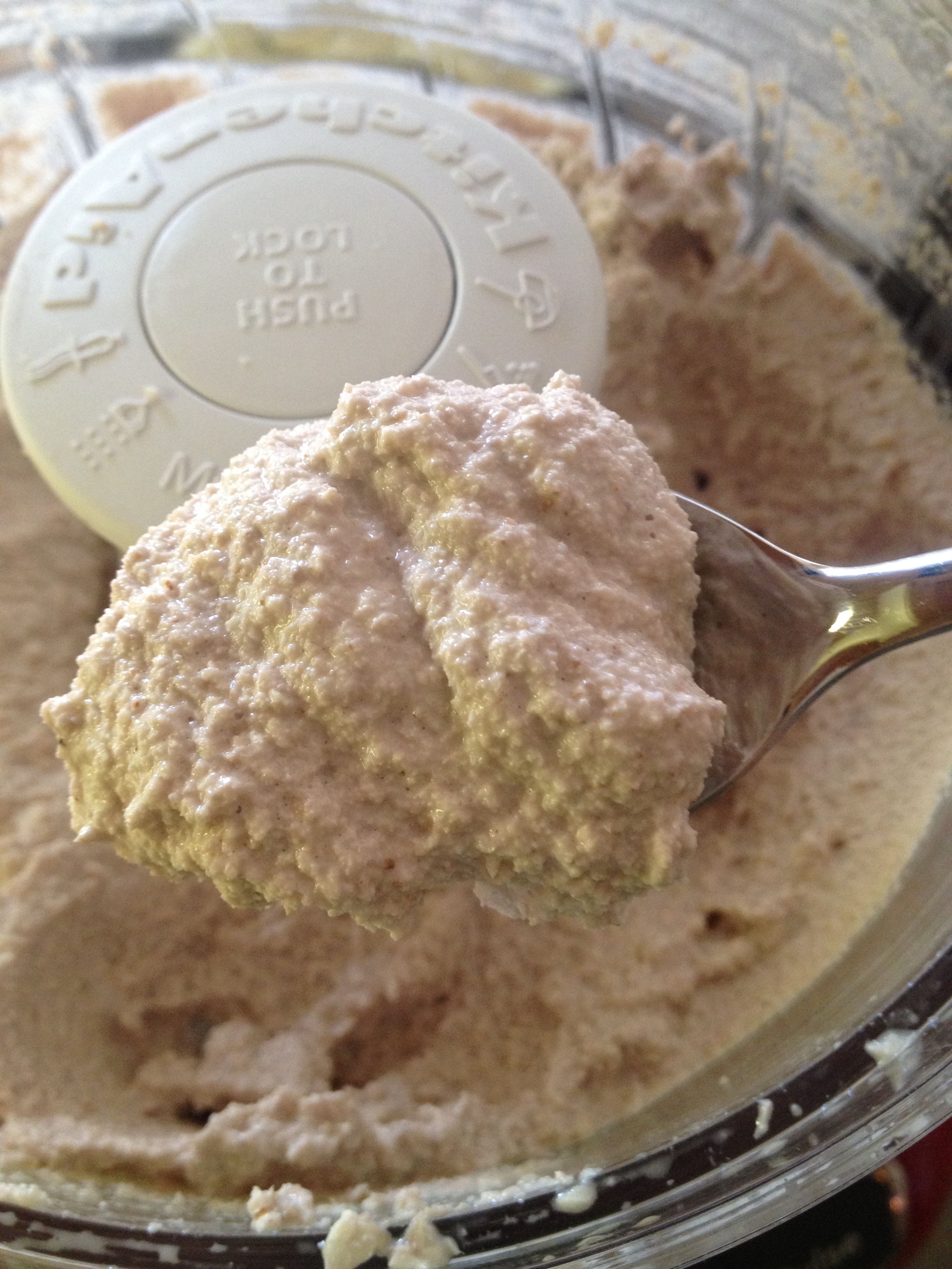 2. Drain and rinse your walnuts and cashews; put them in a food processor, slowly adding the water (about 1/4 cup to start). Blend until smooth, stopping to scrape the sides, adding more water if needed. You’re looking for a thick consistency, but without chunks of walnuts or cashews; try and get it as smooth as possible.