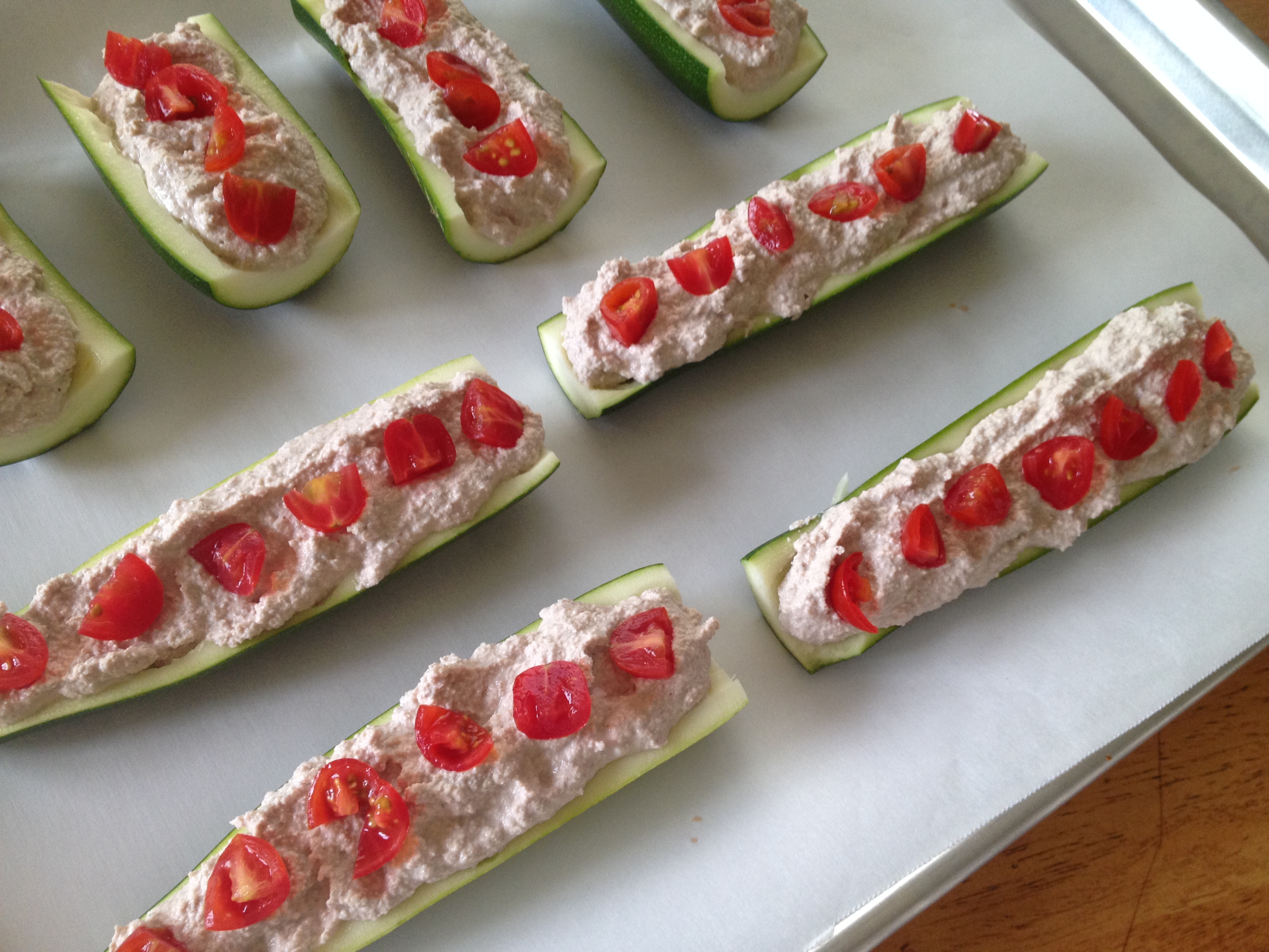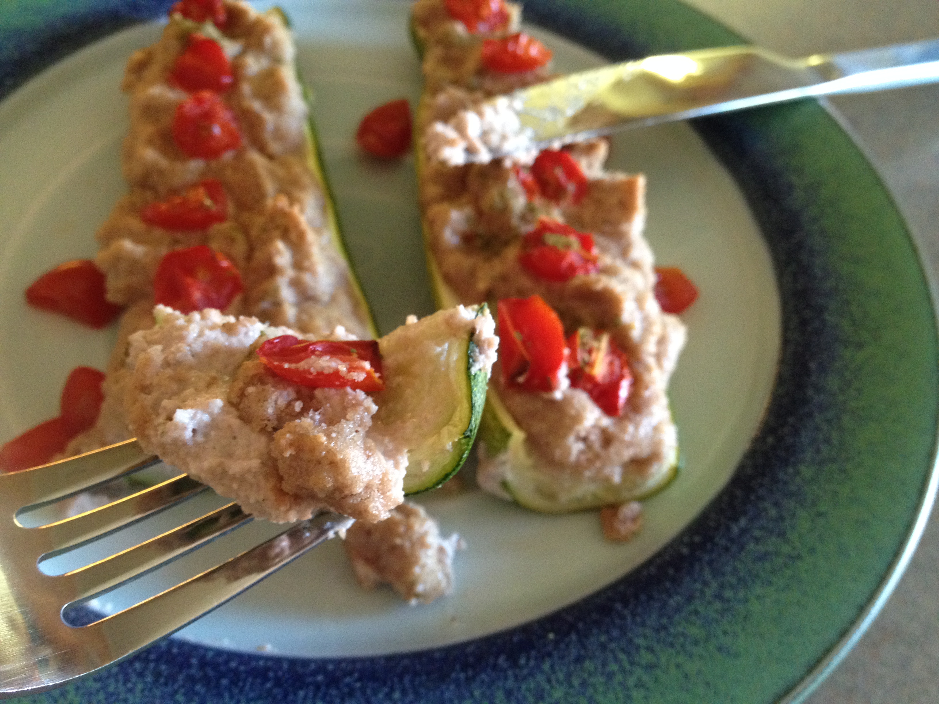 2 responses to “RECIPE: “Ricotta” Stuffed Zucchini Boats”