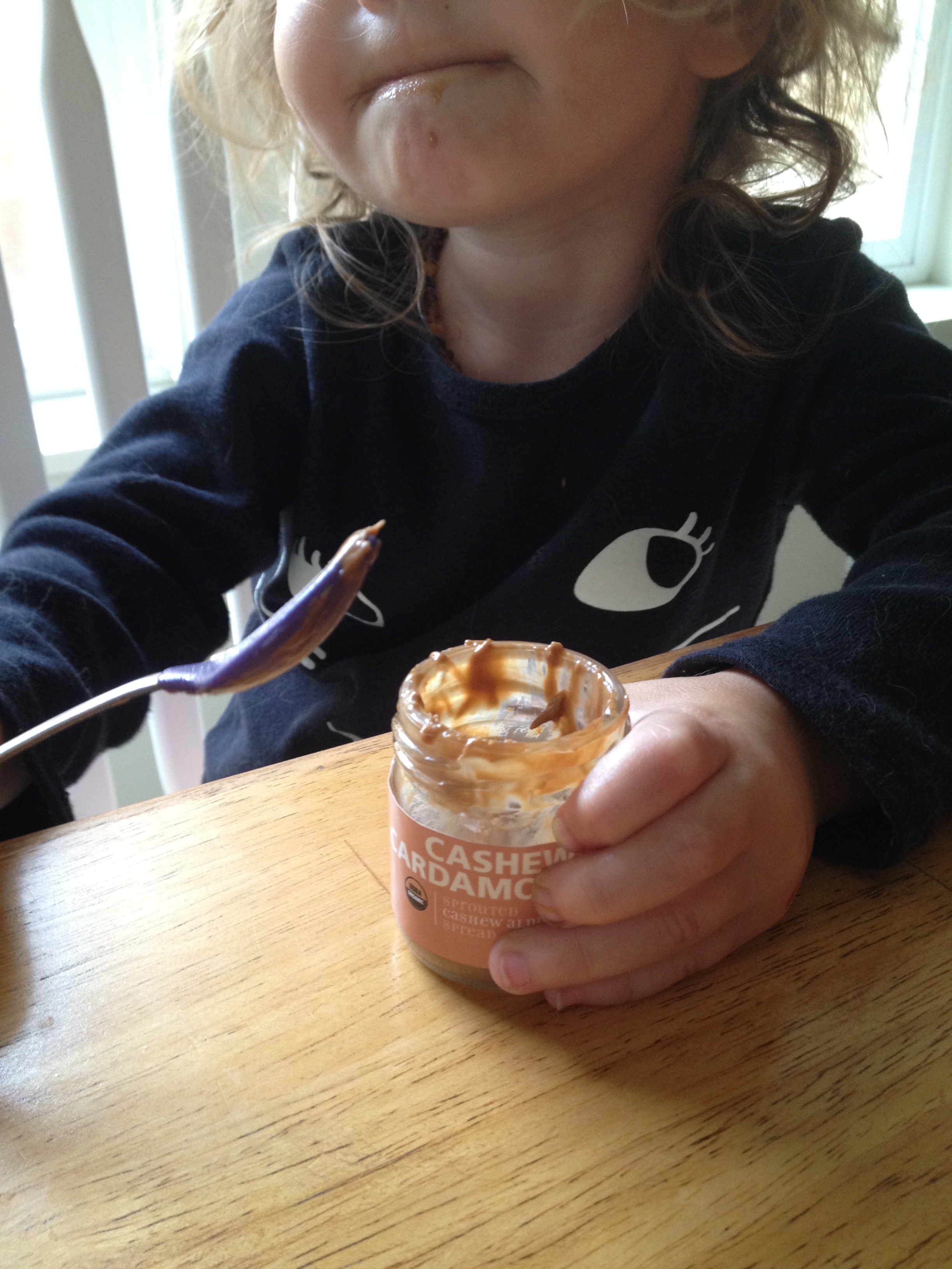 JEM >> Organic Cashew Cardamom Spread >> We have been HUGE fans of JEM – not only because they’re local to us here in Bend, OR, but also because they make the BEST raw nut butter spreads I’ve ever had. I was first drawn to their ingredient lists – simple, organic, gluten-free, soy-free, refined sugar-free. Each jar is incredibly creamy and smooth, thanks to the use of stone grinders. We can’t buy these spreads too often because they’re gone in a flash – mostly because Willow will devour it by the spoonful! My mom recently gave us a little jar of the Cashew Cardamom (their newest flavor) and I was able to sneak a little taste before Willow spotted me and stole the rest! This reminded me very much of a delicious chai latte. I plan to buy a bigger jar very soon! Here is the ingredient list for this jar: Almonds, Cashews, Coconut Sugar, Lucuma, Vanilla, Cardamom.