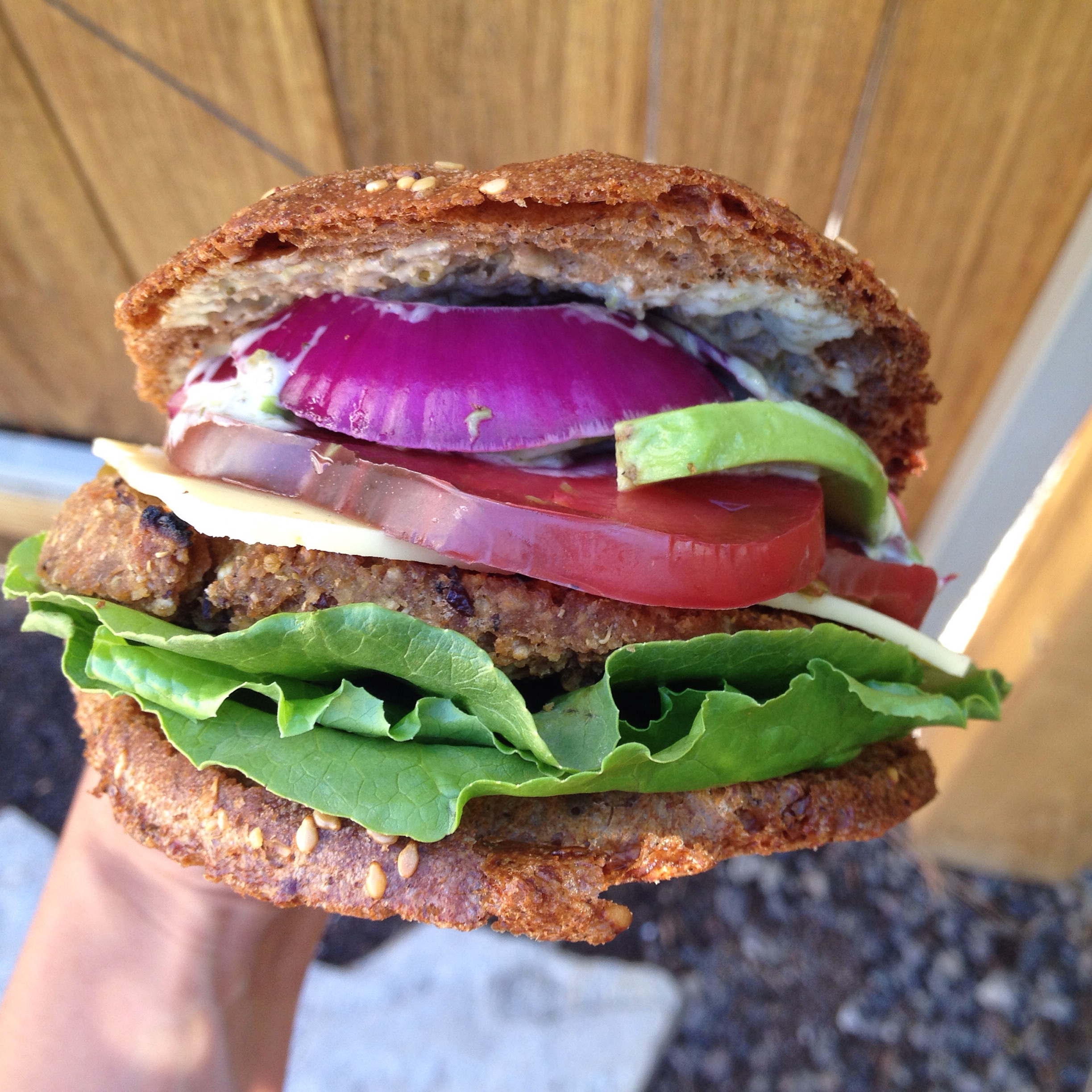 Veggie Burger Night >> If you know me well, you know that we religiously participate in Taco Tuesday every week. This summer, we started having a loaded veggie burger night. The reason we were finally able to do this is because we found a legit bun (gluten-free, dairy-free, egg-free, soy-free and vegan) that held it all together. You might remember a long time ago when I reviewed an awesome molasses bread from Happy Campers – an Oregon company that I proudly, happily support. Well, we spotted their Wild Buns a few months ago and I pretty much squealed! I fully admit that they’re pricey and you only get four to a pack, BUT they’re amazing and work way better than two slices of tiny gluten free bread. Natural Grocers carries their breads and buns in the refrigerated area near tortillas and hummus, while Whole Foods carries their stuff in the freezer section. We bounce between using the buns for burger night and either romaine leaves or butter lettuce. Here’s a photo of an epic burger night using the Wild Buns, Hilary’s Eat Well adzuki bean veggie burgers, romaine, heirloom tomato slices, avocado, red onion slices, spicy vegan mayo and a slice of Follow Your Heart Provolone (a nice treat every now and then). Willow obviously has a deconstructed version.