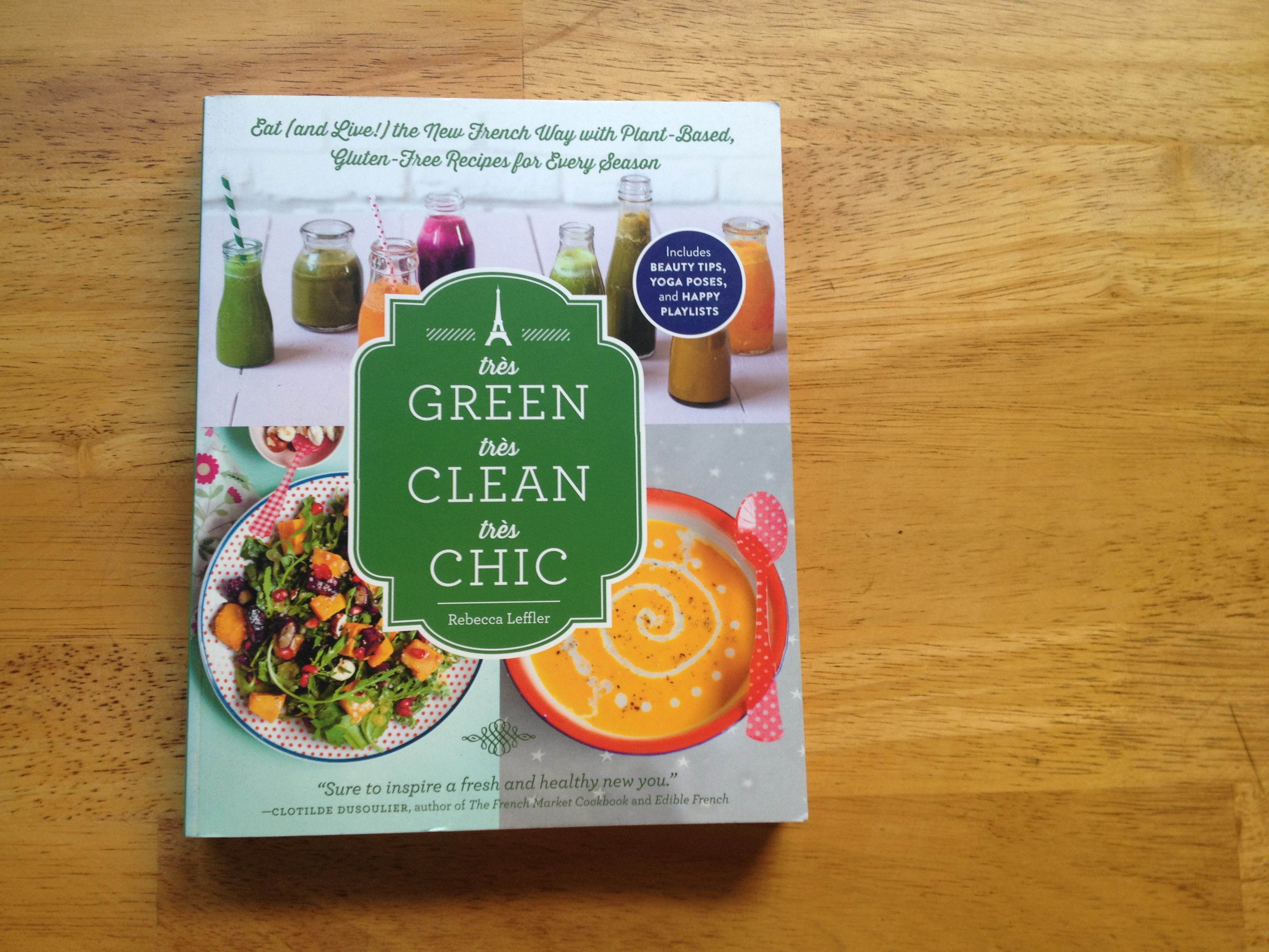 Tres Green Tres Clean Tres Chic by Rebecca Leffler >> If I had to sum up this book in ONE word, it would be FUN!!! I love the way she writes – it’s as if she’s sitting across the table from you and you’re chatting over tea. I knew that I was going to adore her and this book when I read this sentence on page 8: “When in doubt…pour tahini sauce over anything and everything.” YES!!!!!!!! Her sense of humor is fantastic (lots of great one liners) and while I still have a TON of recipes to make from this book, just glancing over the ingredient lists make me happy. The book is all gluten-free, refined sugar-free and soy-free…so, obviously a winner. She also has the book sectioned off by seasons…and the photos are beautiful! So, what makes this book fun? It doesn’t just contain recipes – in fact, she shares awesome playlists, yoga poses and beauty treatments. This book is loaded with positive energy and “clean” recipes! Here are the few that we’ve tried and loved:
