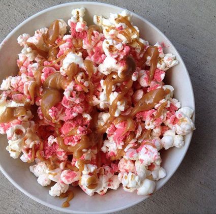 - PB&J Popcorn > Genius. Popcorn is one of our favorite guilt-free snacks, but Natalie took it to the next level and threw in the best, classic combo…PB&J! We’ve never had or purchased powdered peanut butter, so I used the full fat creamy peanut butter that we always use. The end result was a bit thicker than what Natalie’s pictures show, but it was incredible! I love the use of freeze-dried strawberries for the “jelly or jam” part. Beautiful to look at and satisfied the sweet, crunchy snack I was looking for.
