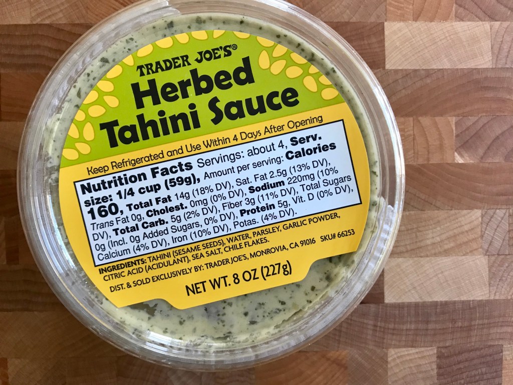 Trader Joe’s Herbed Tahini Sauce >> I think the name says it all! If you love tahini like I do, then you need to grab a container (or two). This was creamy, tangy, herb-y, with a slight kick from the chile flakes. I enjoyed it with fresh sliced veggies, but I’m thinking we need to get more so we can try making a potato or pasta salad with it!