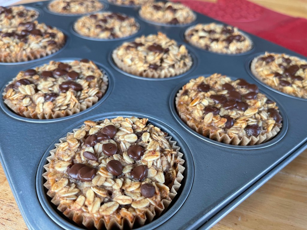 We made the Chocolate Chip option first and it was a HUGE hit….Willow ate three that first morning. The next time we made the Apple Cinnamon variety, and it wasn’t as highly approved. Josh and I liked them because they weren’t overly sweet and the diced apple worked well. But if I had to choose a favorite, it would definitely be the chocolate chip variety. That one contained mashed banana, peanut butter, and chocolate chips – it felt heartier to me and had more flavor.